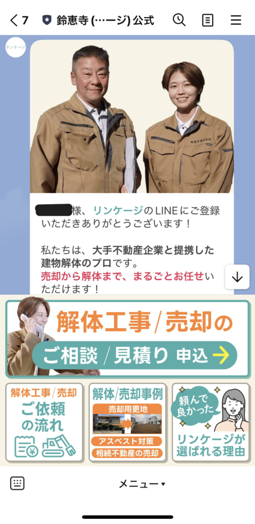 無料のご相談依頼やお見積り依頼も公式LINEからお気軽にしていただけます。